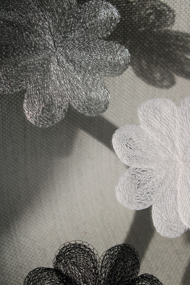 Comme son nom l’indique, “troisième” en italien, cette création vient compléter une série où chaque variation explore une émotion et une lumière singulière. Ici, les tons se font plus tranchés, entre gris, noir et blanc, et révèlent une composition plus libre, où les fleurs semblent flotter dans l’espace, en équilibre délicat.